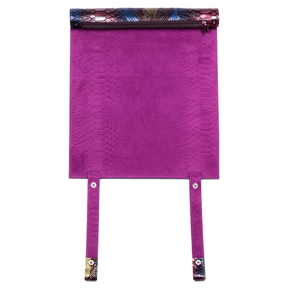 Step into a world where every roll counts with the Scroll of Legends, a strikingly designed dice mat/case crafted from vegan leather. Perfect for the discerning Dungeons and Dragons (DnD) player, this scroll features an exterior of multicoloured dragon scales and an interior dice mat of plush purple velvet, combining luxury with legendary aesthetics.